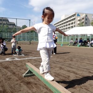 年中さんは、玉入れや平均台など大きな道具を使っての競技は本番の今日が屋外では初めてでした。それでも一生懸命、真剣に取り組んでとっても上手にする事ができました。