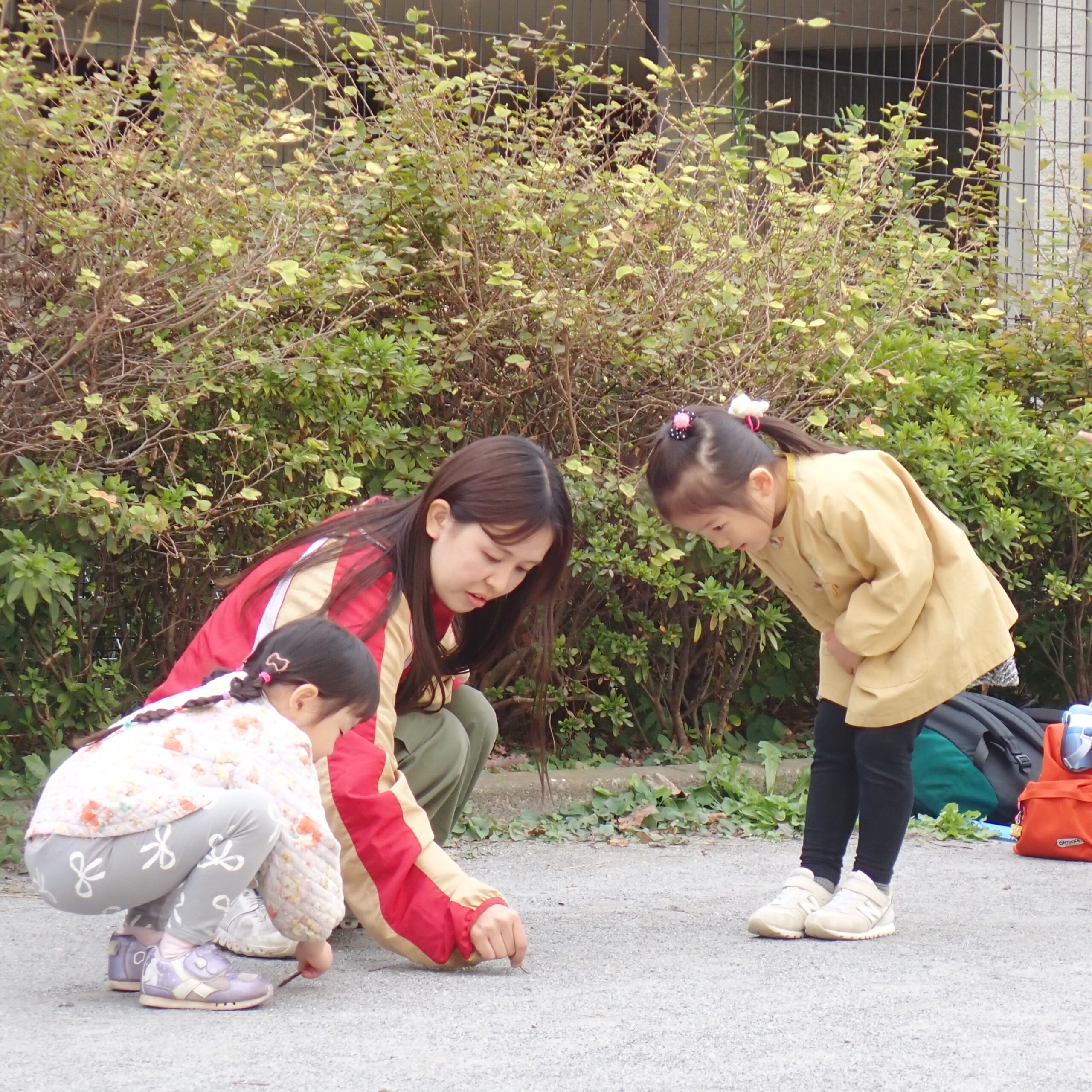 公園では、氷おにをして走ったり、むっくりクマさんで遊んだり、石を拾って並べるお友だちもいました!