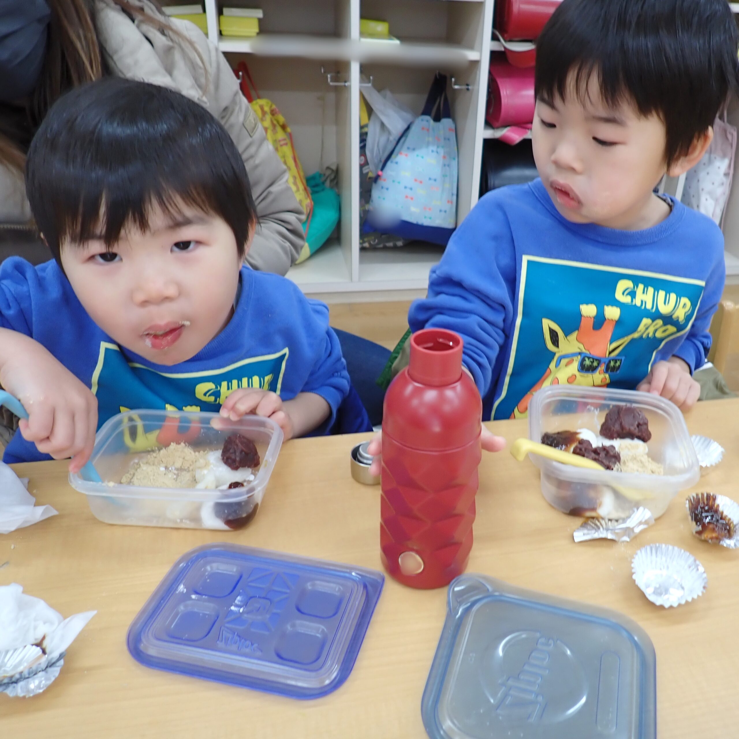 つきたてのお餅は手作りあんこ、手作り味噌だれ、きな粉のトッピングをして家族のみなさんで一緒に美味しくいただきました😋甘じょっぱい味噌だれが大人気で「おもちおいしかった!」とニコニコのお友だちでした!